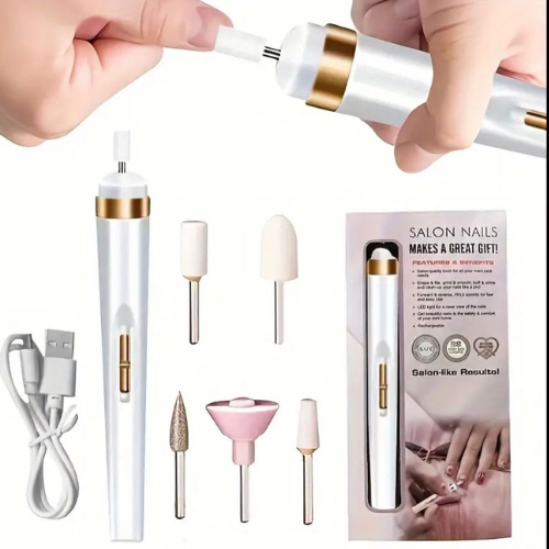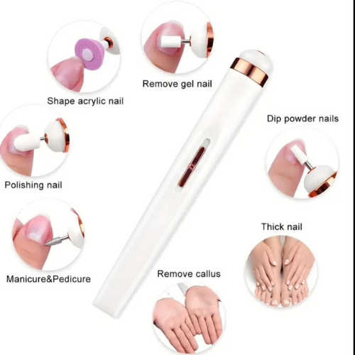 Elevate your nail care routine with the Portable Mini Electric Nail Files and Drill Kit, the ultimate tool for professional-grade manicures and pedicures. Designed with convenience in mind, this compact and lightweight kit features 6 interchangeable grinding heads to shape, smooth, buff, and polish both natural and acrylic nails with precision. Perfect for home or salon use, the electric nail drill offers adjustable speed settings for complete control and effortless results, whether you’re working on delicate cuticles or tough acrylics.